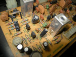 基板上のコンデンサー、抵抗も大丈夫そうです。ただし、トランジスターの足は軒並み黒くなっており、その動作に不安がありますね。